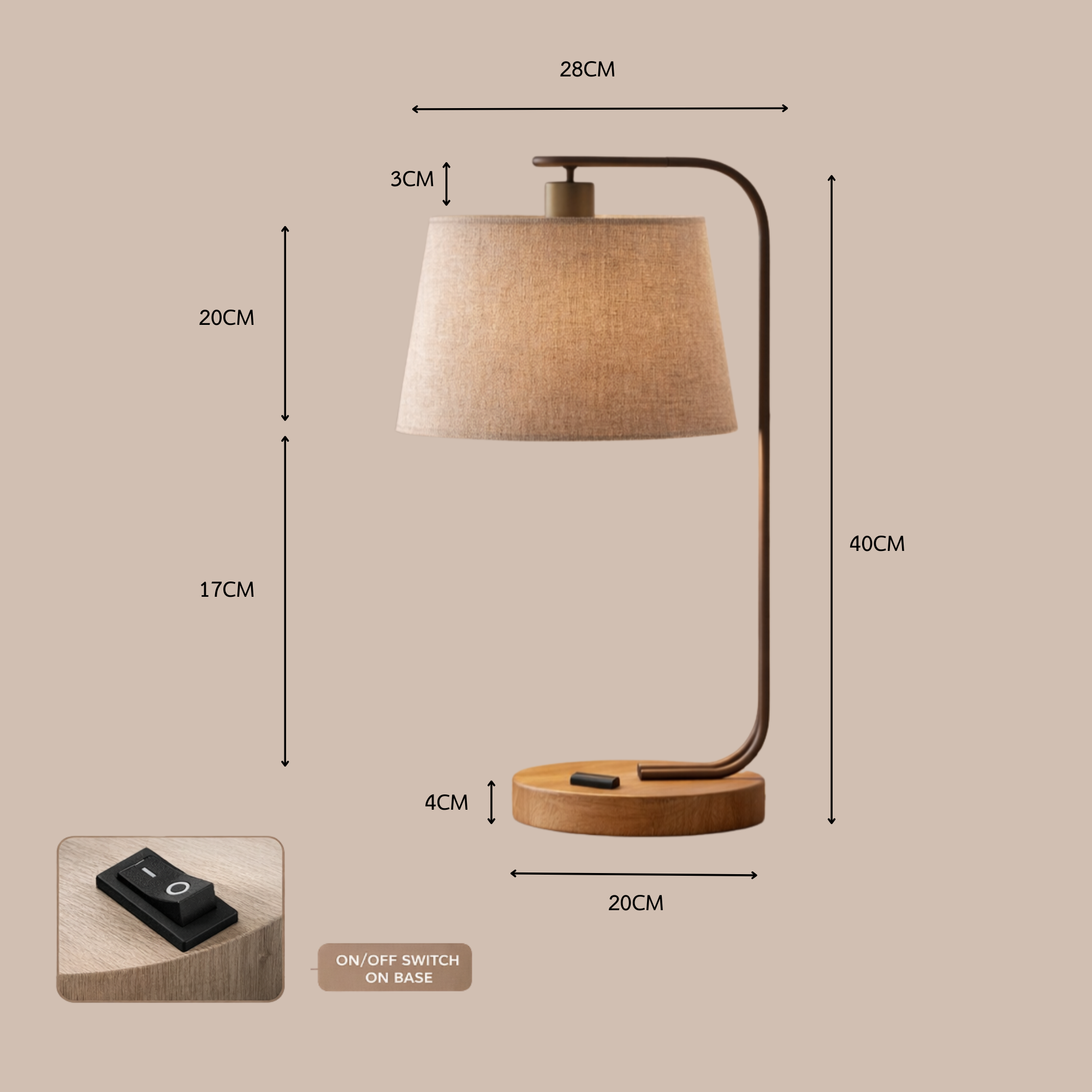 สวิตช์เปิด-ปิด อยู่ที่ฐานโคมไฟ