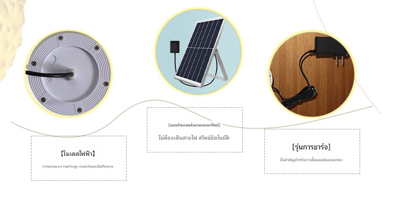 แรงดันไฟฟ้า : AC220V (รุ่นพลังงานแสงอาทิตย์ / รุ่นชาร์จไฟ)
